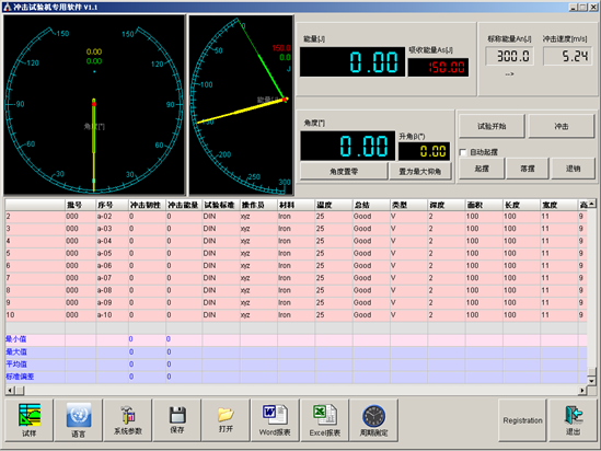 測試軟件能實時虛擬數(shù)碼管顯示,監(jiān)控能量值和角度值,并實時保持一次打擊或空擺的沖擊能量 .